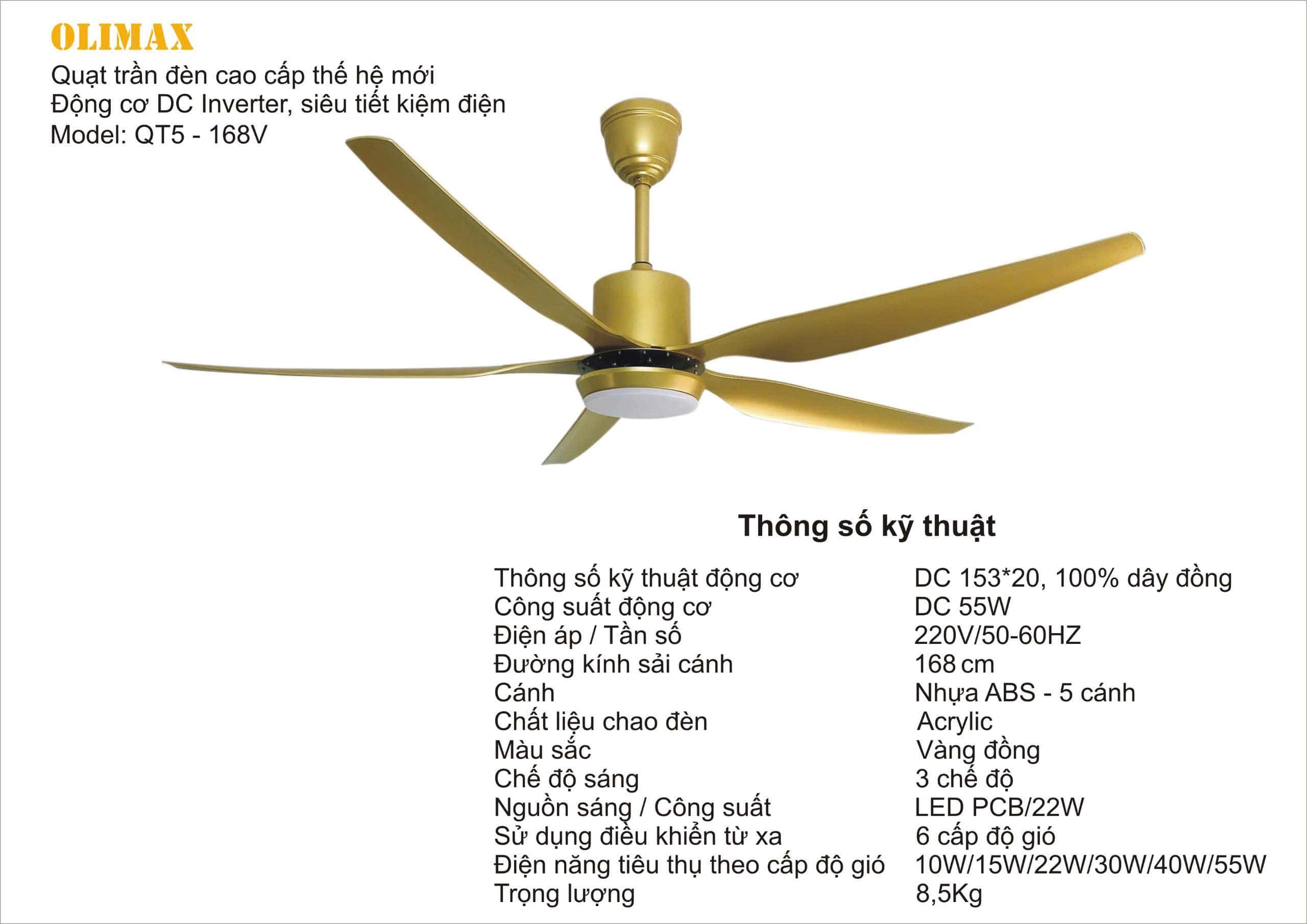 QUẠT TRẦN ĐÈN OLIMAX: QT5 – 168V
