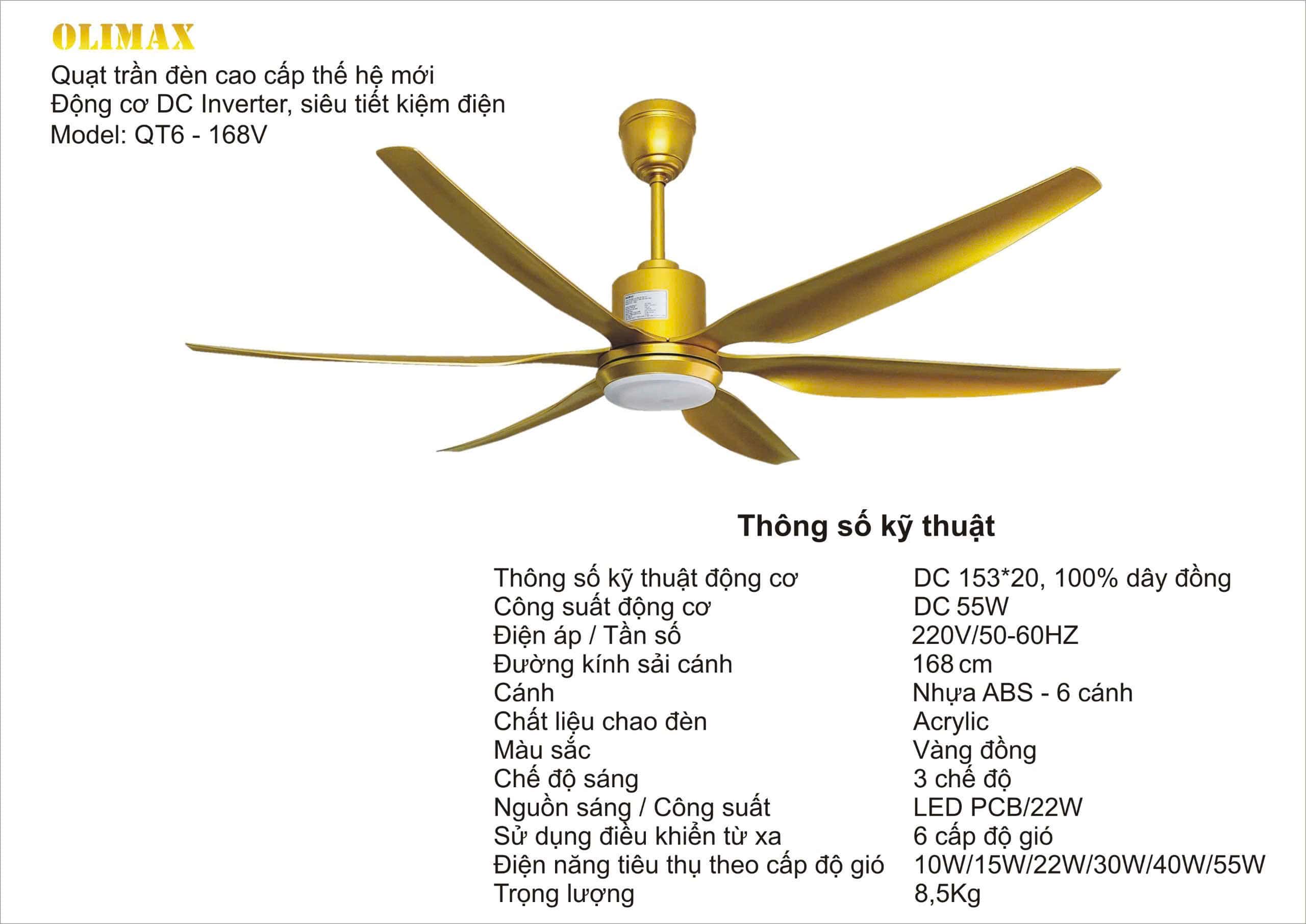 QUẠT TRẦN ĐÈN OLIMAX: QT6 – 168V