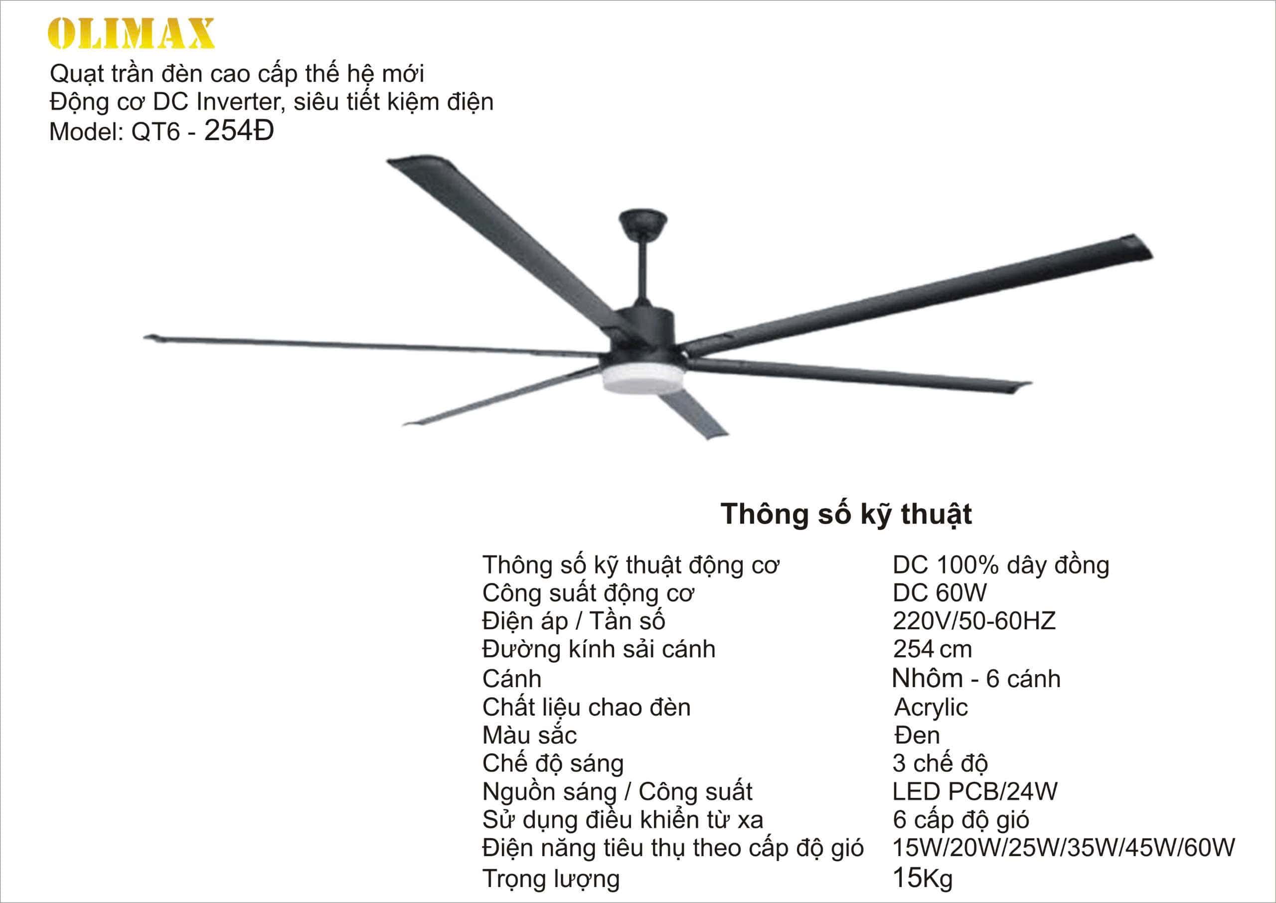 QUẠT TRẦN ĐÈN OLIMAX: QT6 – 254D